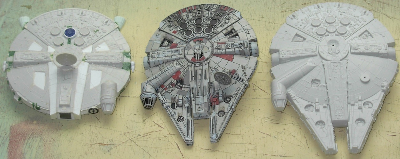 A final comparison shot of the 3-Z, FFG Falcon, and AMT/ERTL Falcon: