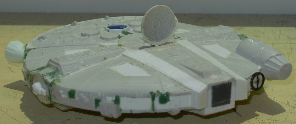 In the great conversion pile from the old AMT/ERTL Rebel Base Diorama kits are a stack of 5 YT-1300 Millenium Falcons, all undergoing various conversions to create an entire Corellenian Engineering Corporation airshow! And provide a diverse fleet for the Outer Rim Smugglers.