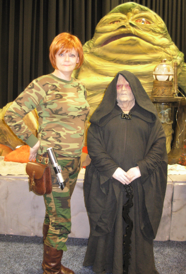 This was pretty simple to find everything off-the shelf — thanks to the artist for using 1980’s woodland camouflage pattern for her jumpsuit. This is just a cheap and quick con costume, which someday I hope to upgrade to a full-quality version suitable for use at events with the Rebel Legion and/or 501st. (Mara Jade switches sides in this novel, so this outfit works for either Imperial or Rebel costuming, depending on which lightsaber she carries! After she switches sides and gives up her old job as the Emperor’s Hand, Luke gives her his old lightsaber.)