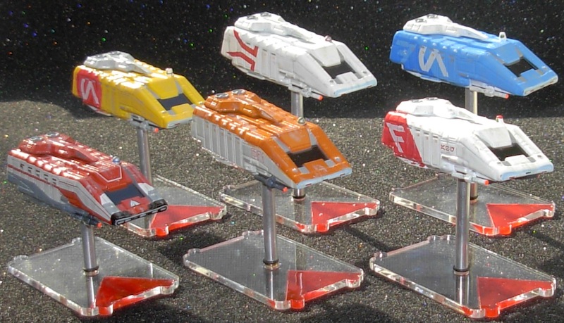 They’re mounted on CorSec’s shuttle stands. As usual, I scored the firing arc into the base with an XActo. Then painted the firing arc with Model Master’s Transparent Red.