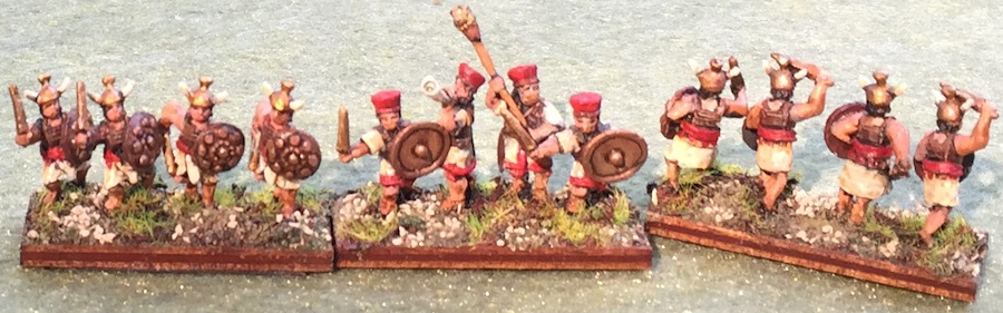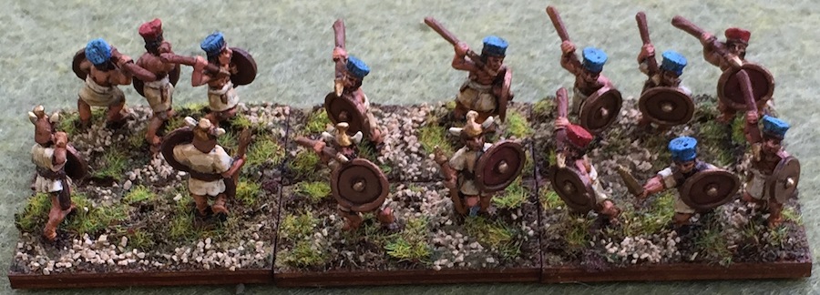 The 3Ax and 2Ps, javelin armed light troops, the Ax stands have mixed helmet colours to easily distinguish them from the 3Bd during gameplay: