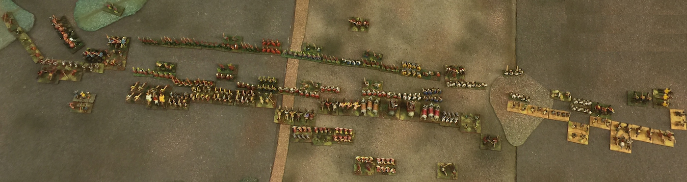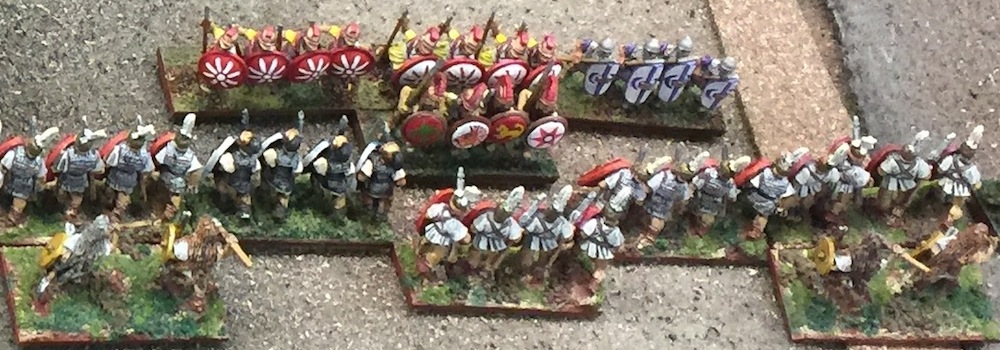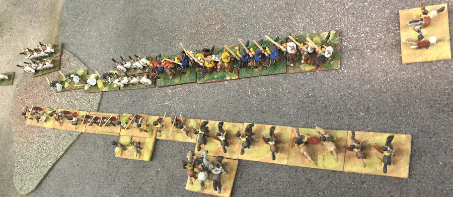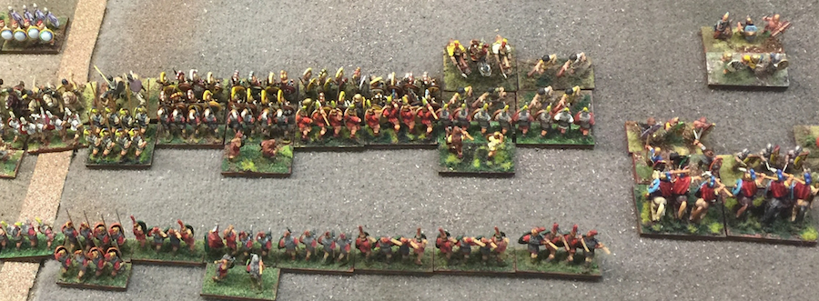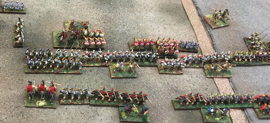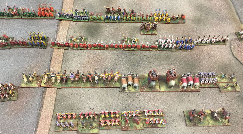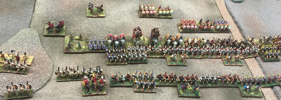 Turn 2, the armies close in. View from the Carthaginian center with Greeks on their left, looking across at the ranks of Romans.